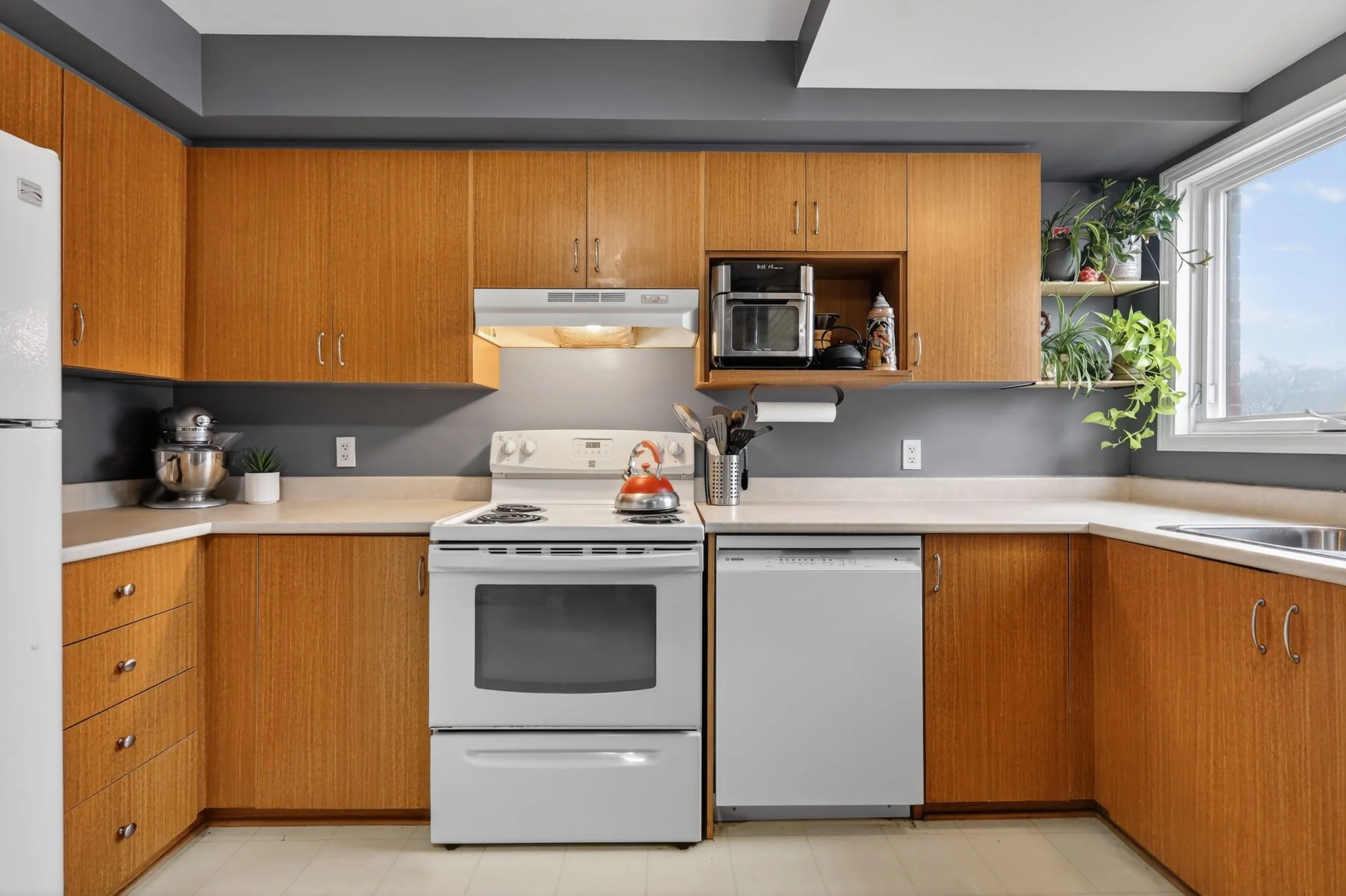 .Recent updates include fresh paint, renovated bathrooms (2025), hot water tank (2026), dishwasher, washer and dryer (2025), AC (2024) furnace (2021). Walking score of 97!