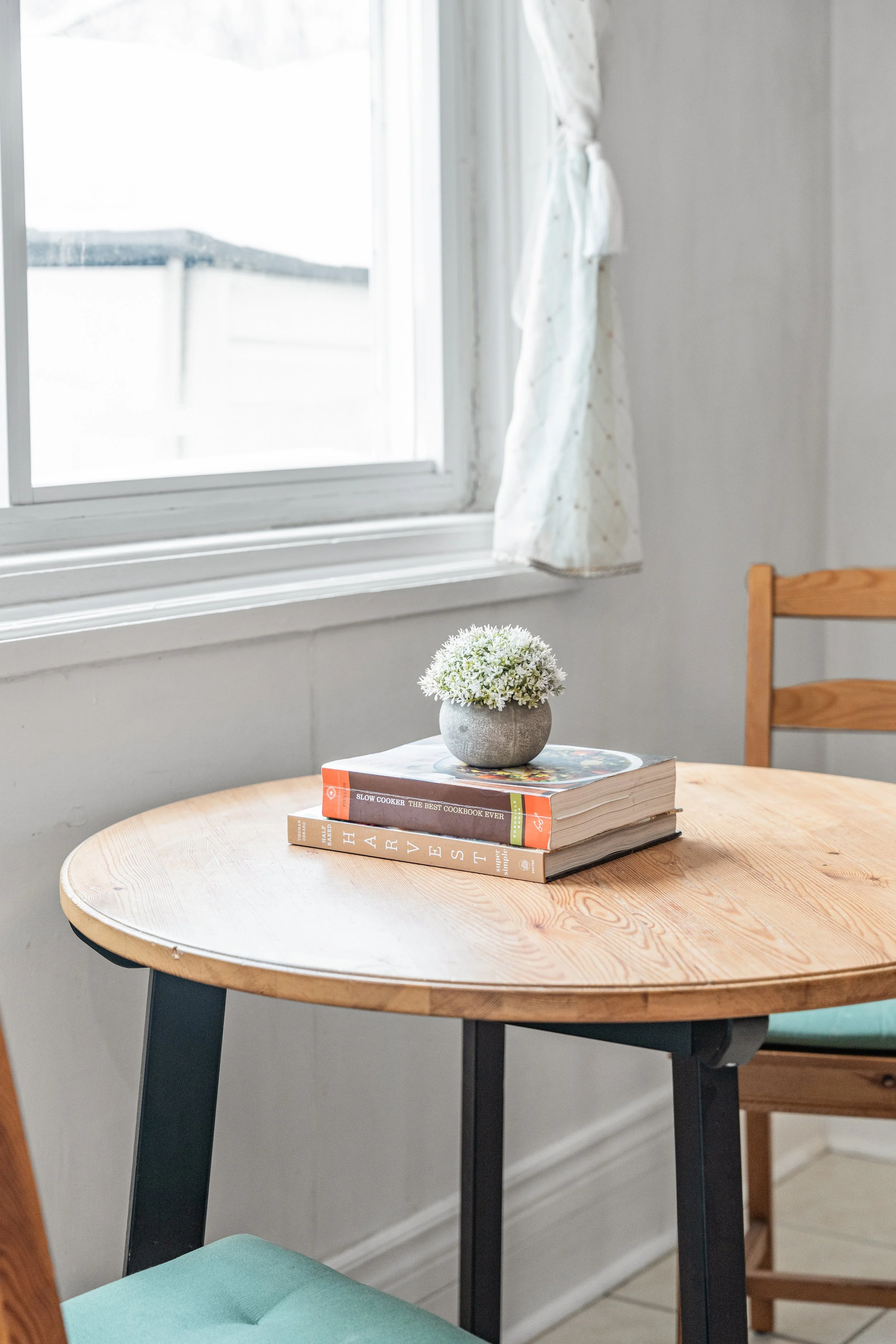 The large, sun-filled English cottage–style kitchen offers ample cabinetry and additional storage space, complemented by a charming eat-in area ideal for slow mornings, casual meals, and everyday moments.